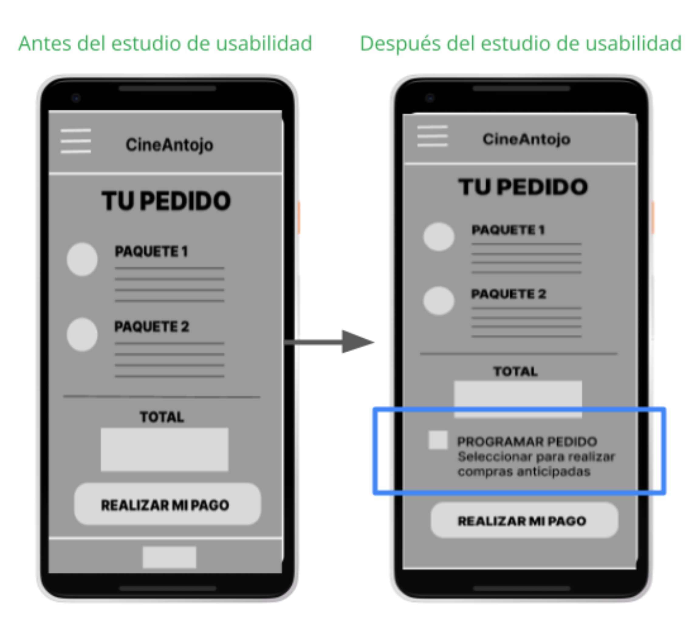 En el estudio de usabilidad se sugirió que la aplicación pudiera programar pedidos, esto con el fin de hacer la compra anticipada desde el momento en que realiza la compra de sus boletos.