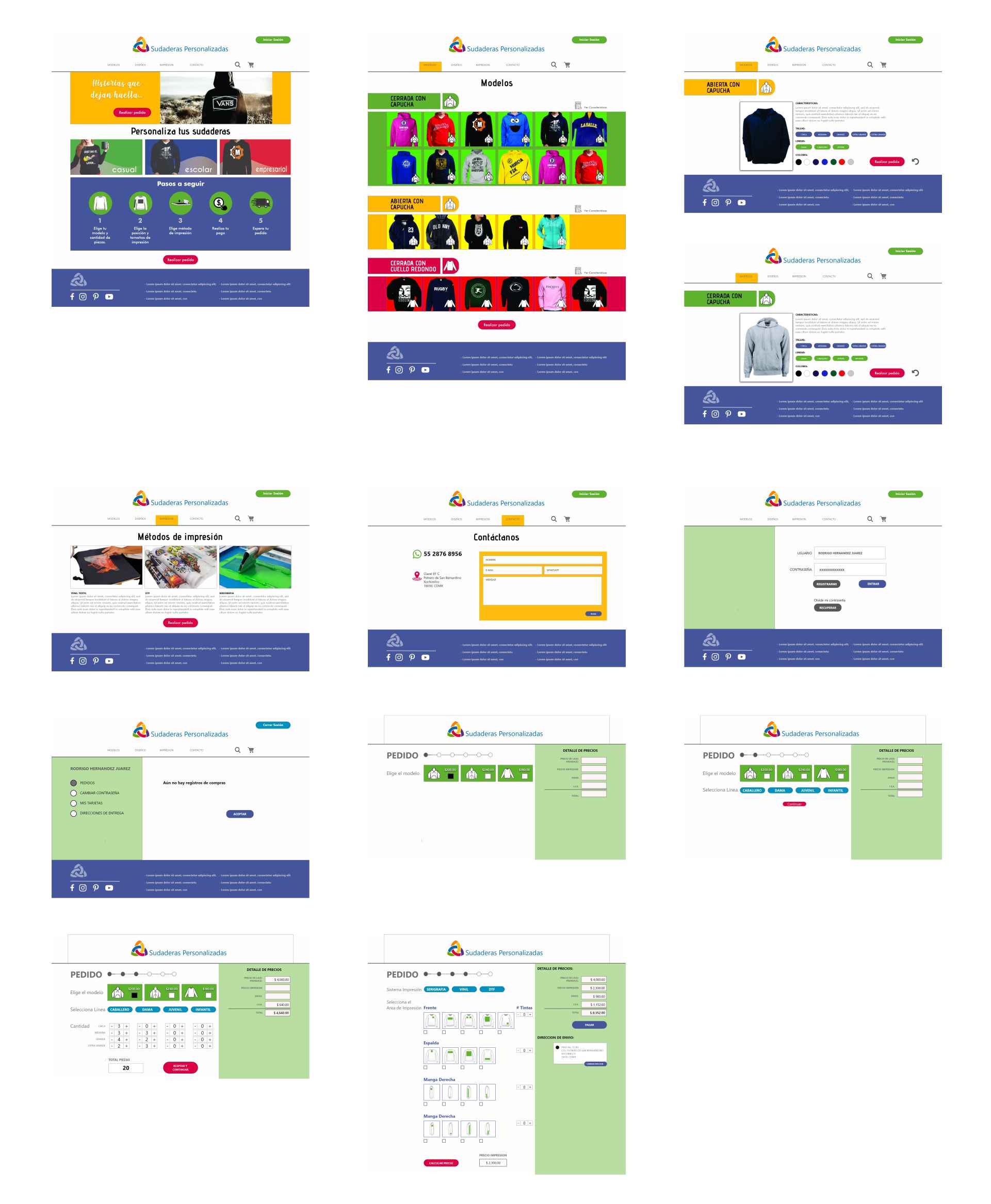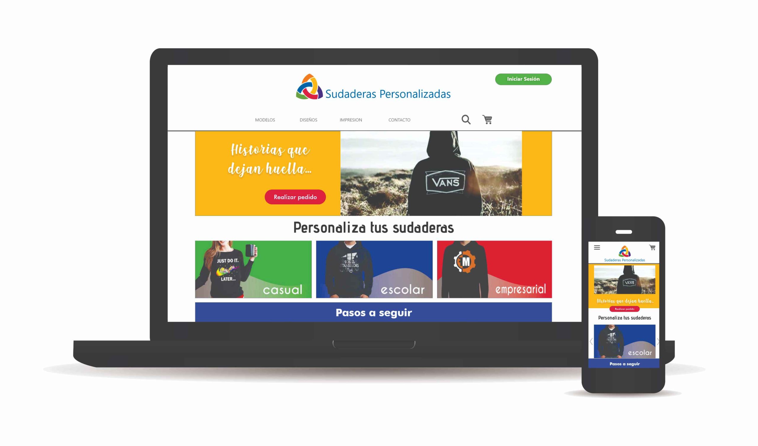 Sitio web responsivo para el pedido y compra de Sudaderas personalizadas.
